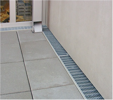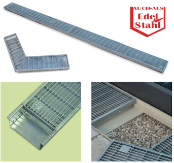Drainschicht indem die Roste die Rinnenstöße überlappen. Dadurch
